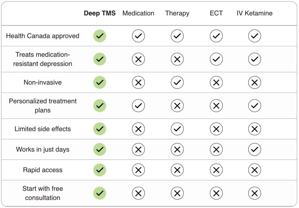 Deep Transcranial Magnetic Stimulation (dTMS) is a non-invasive, drug-free treatment that uses magnetic pulses to stimulate specific areas of the brain linked to mood regulation and emotional balance. It’s FDA and Health Canada approved and offers a safe, effective option for treating conditions like depression, anxiety, OCD, and PTSD.
